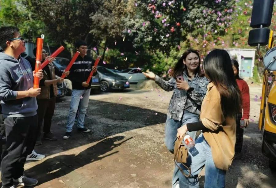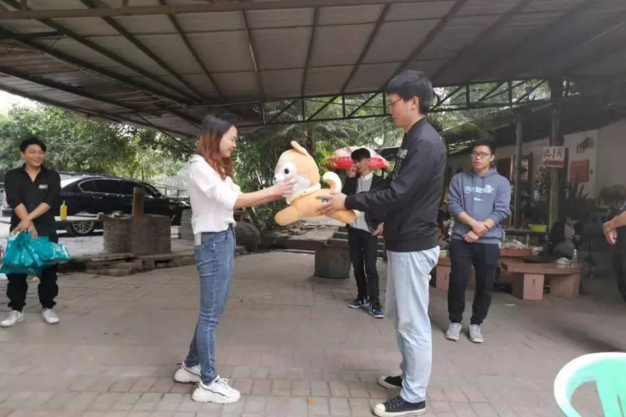 隨后,大家又開始了第二輪游戲——“蒙面速遞”。男女搭檔相隔五米,女搭檔拿著餅干,蒙上眼睛蒙原地轉(zhuǎn)圈三秒,男搭檔坐在椅子上,指揮女搭檔將餅干喂給自己,游戲優(yōu)勝者可以給女搭檔送禮物。游戲結(jié)束之后,所有男生向每一位女生送上美麗的鮮花。