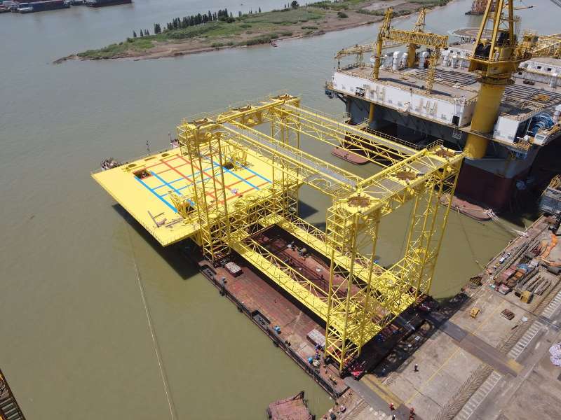 7月12日下午2點,隨著保利長大多樁穩(wěn)樁平臺項目第4套導向架順利完成滾裝裝船工作,標志該項目順利完工。保利長大多樁穩(wěn)樁平臺項目施工過程中,為了滿足業(yè)主生產需求,公司把第3套上平臺和第4套導向架結構件放在公司位于東莞的中遠廠區(qū)進行制作及總組。