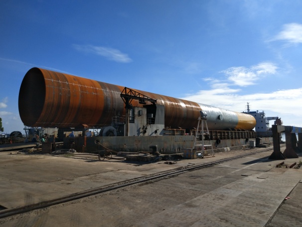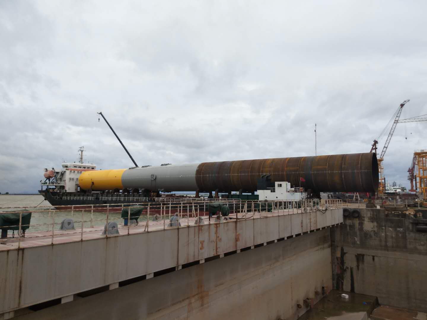 7月15日凌晨?jī)牲c(diǎn)多,歷經(jīng)1小時(shí)50分鐘的滾裝,中廣核后湖單樁項(xiàng)目首套單樁——77#樁的裝船作業(yè)于4點(diǎn)15分順利完成,第二套73#樁也于7月25日上午11點(diǎn)左右完成裝船交付,標(biāo)志著中廣核后湖單樁項(xiàng)目首批單樁的生產(chǎn)交付任務(wù)全部完成!